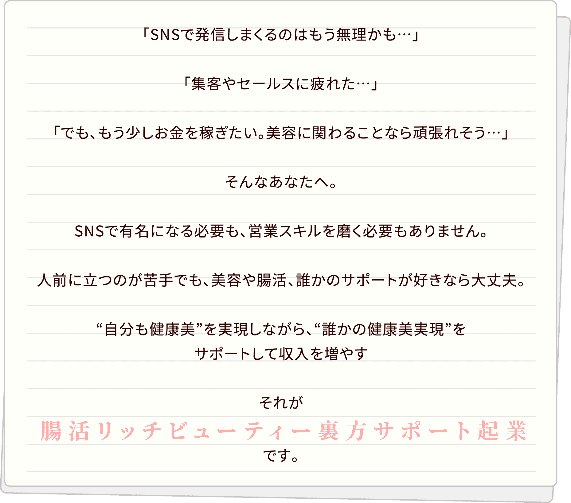 「自分も元気に、そして誰かの健康や美しさを支えながら、経済的な自由も手に入れたい」